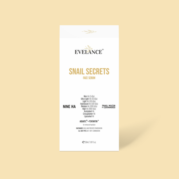 Evelance Snail Secrets Face Serum is a potent skincare product designed to hydrate, rejuvenate, and improve the overall texture and appearance of the skin.