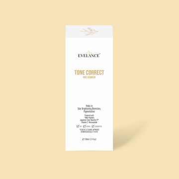 Evelance Tone Correct Face Cleanser is an advanced skincare product designed to brighten the skin, reduce blemishes, and tackle pigmentation concerns.