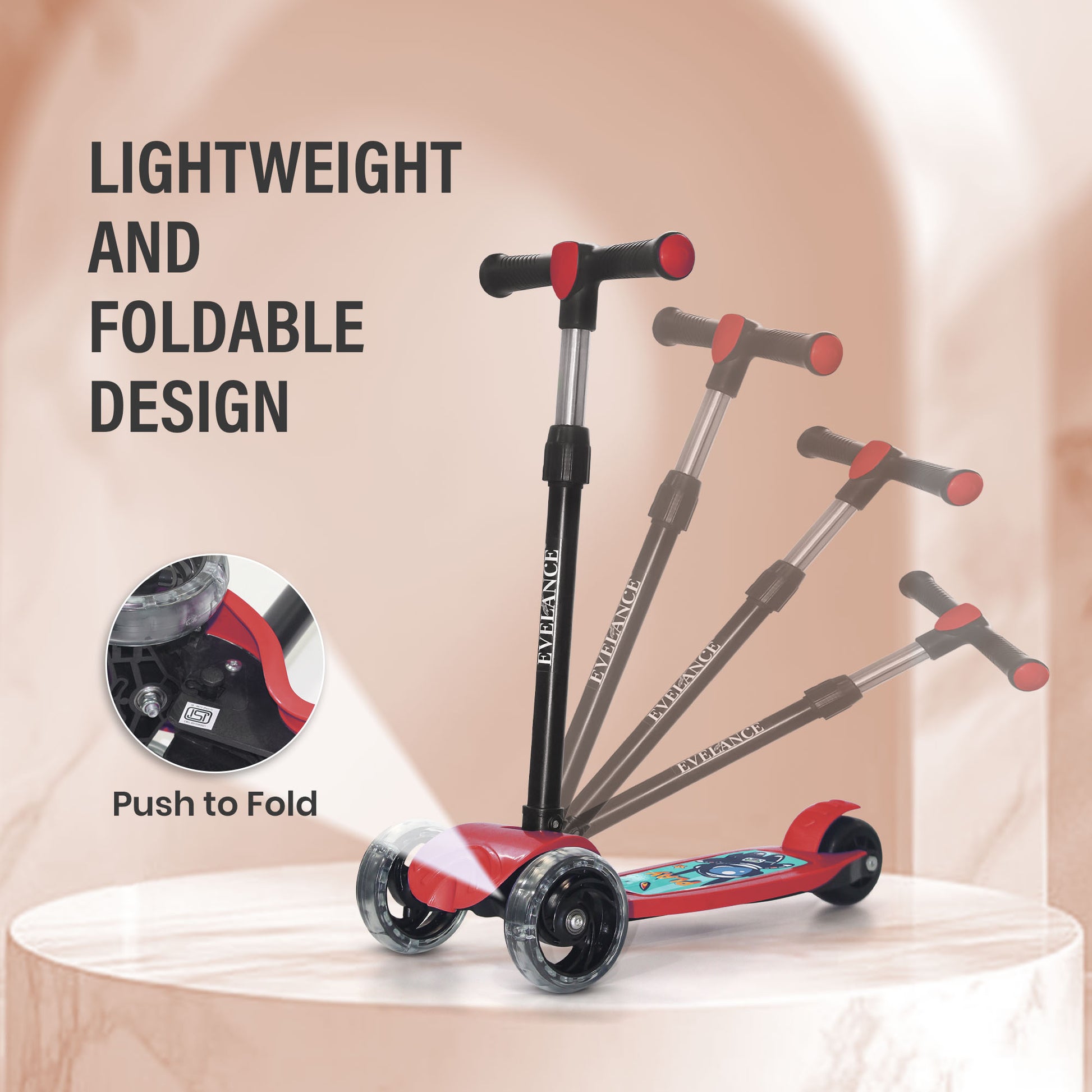 EVELANCE Lil Roamer Scooter Foldable Kick Skating Cycle| Skate Scooter for Kids(Max User Weight: 50Kg) Kids Scooter Red